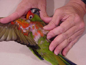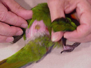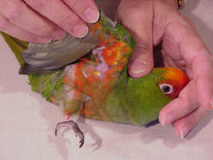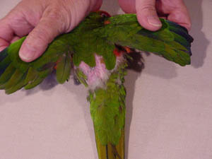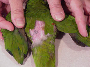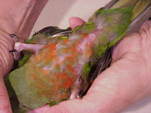 plucked and had very dry skin. He lived in a house with smokers, ate seeds and